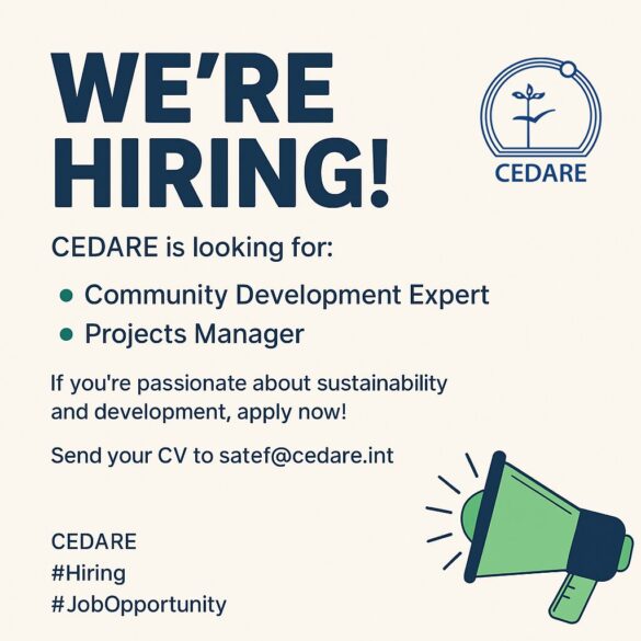 يسر المركز الإقليمي للبيئة والتنمية للمنطقة العربية وأوروبا (سيداري – CEDARE) أن يعلن عن فرص عمل جديدة: