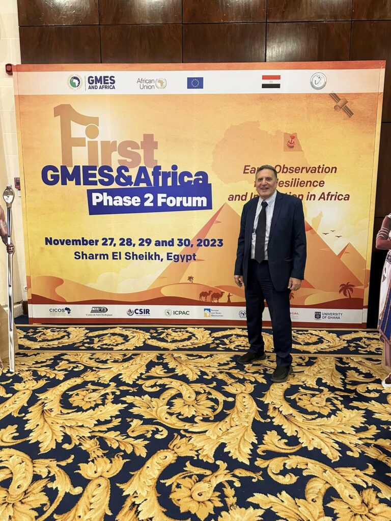On Monday, November 27, 2023, in Sharm El-Sheikh, the inaugural session of the GMES & Africa project’s first forum titled “Earth Observation for Invention and Innovation in Africa” took place. The forum, organized by the African Union Commissioner in collaboration with the Egyptian National Authority for Remote Sensing and Space Sciences and the Center for Environment and Development for the Arab Region and Europe (CEDARE), attracted over 250 attendees, including experts, representatives from various alliances supporting the European Union, and delegates from more than 41 countries. Among the participating organizations were the African Sahel and Sahel Observatory, focusing on “Earth Observation for the Sustainability of the Wonderful Earth,” and the University of Ghana, contributing to the Sahel and Marine Project