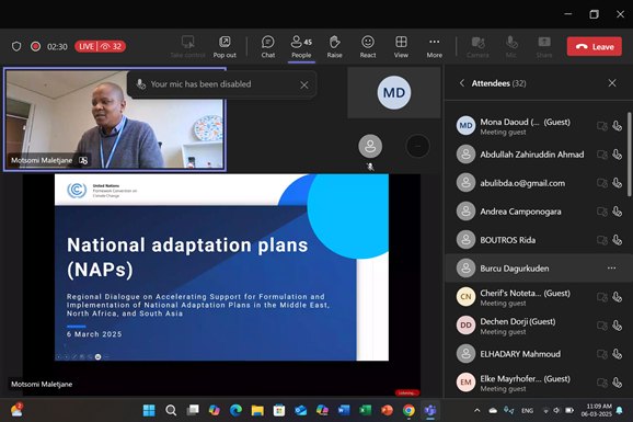 On March 6, 2025, the UNFCCC RCC MENA & South Asia, hosted a vital regional dialogue to strengthen support for the formulation and implementation of National Adaptation Plans (NAPs) across MENA & South Asia—two regions highly vulnerable to climate change.